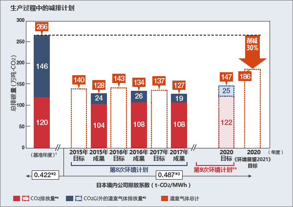 目标:2020年度生产过程中温室气体总排放量的CO2换算量抑制在147万吨以下。