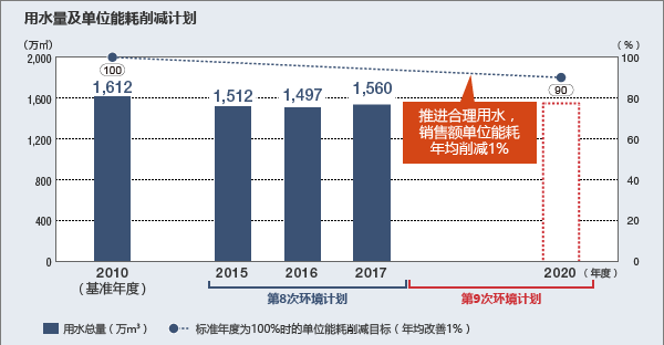 目标:销售额单位用水量比2010年度年均削减1%